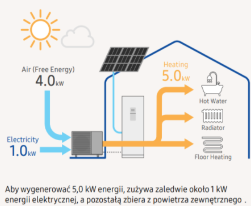 3 kW ciepła pochodzi wprost z powietrza (darmowa energia odnawialna).